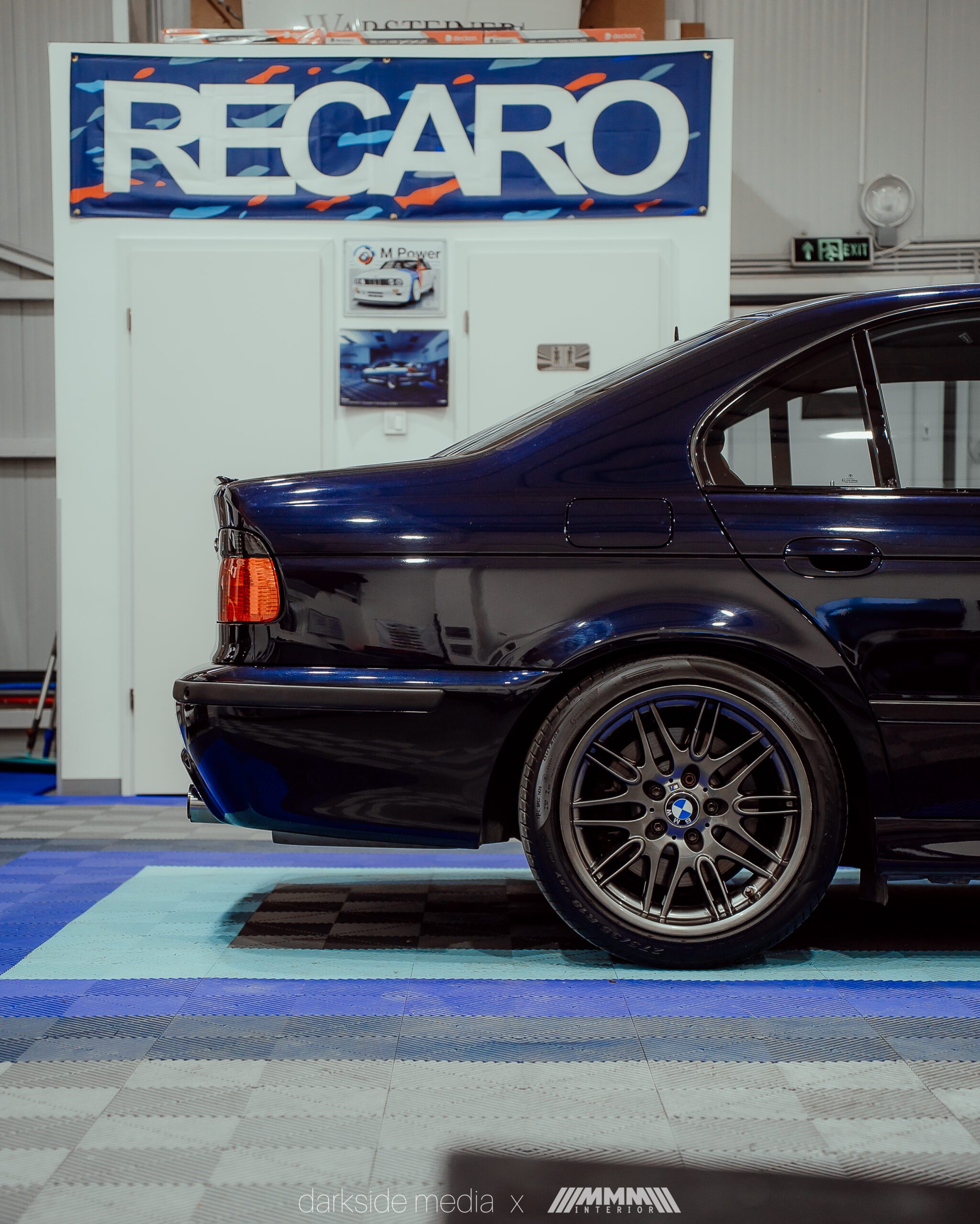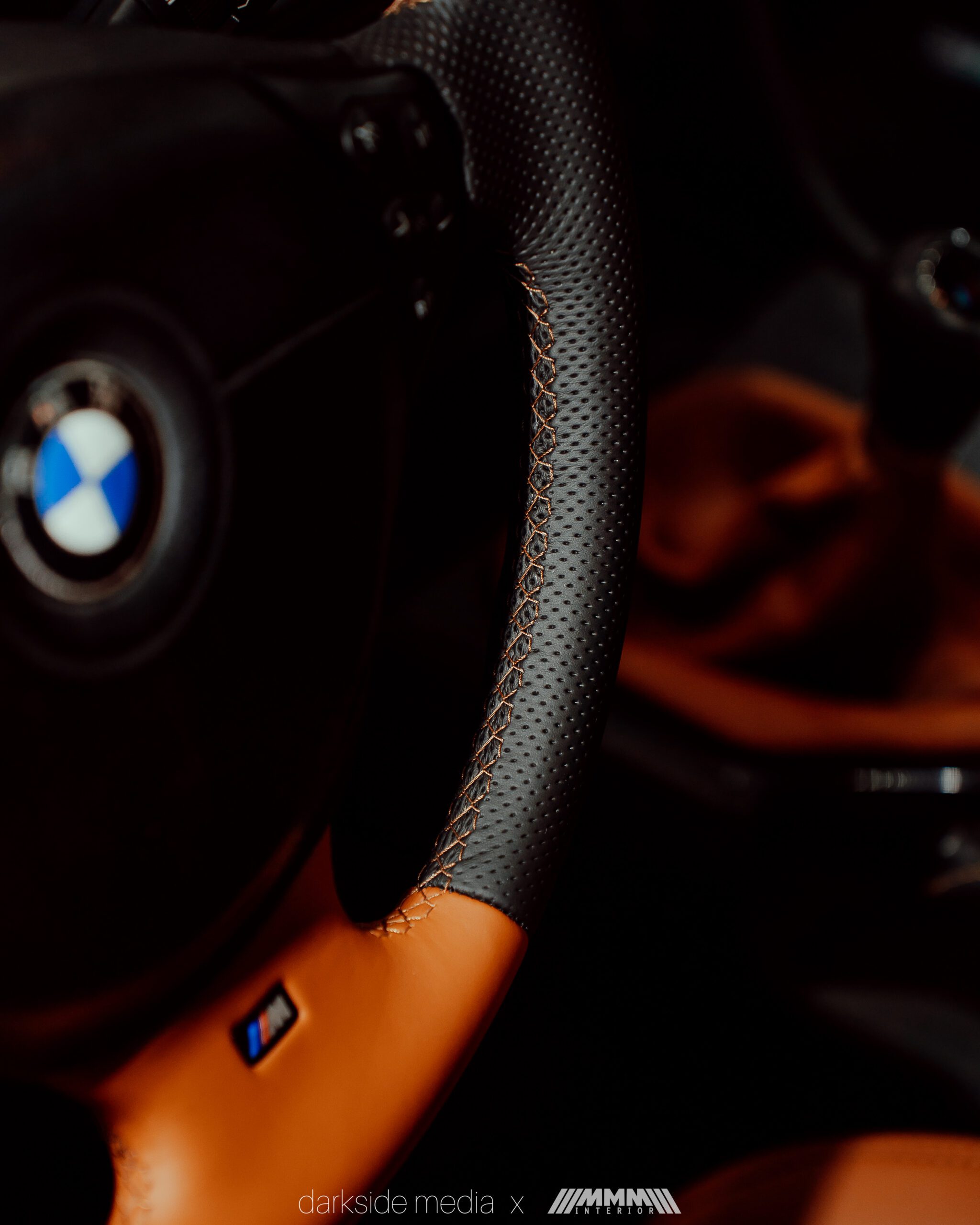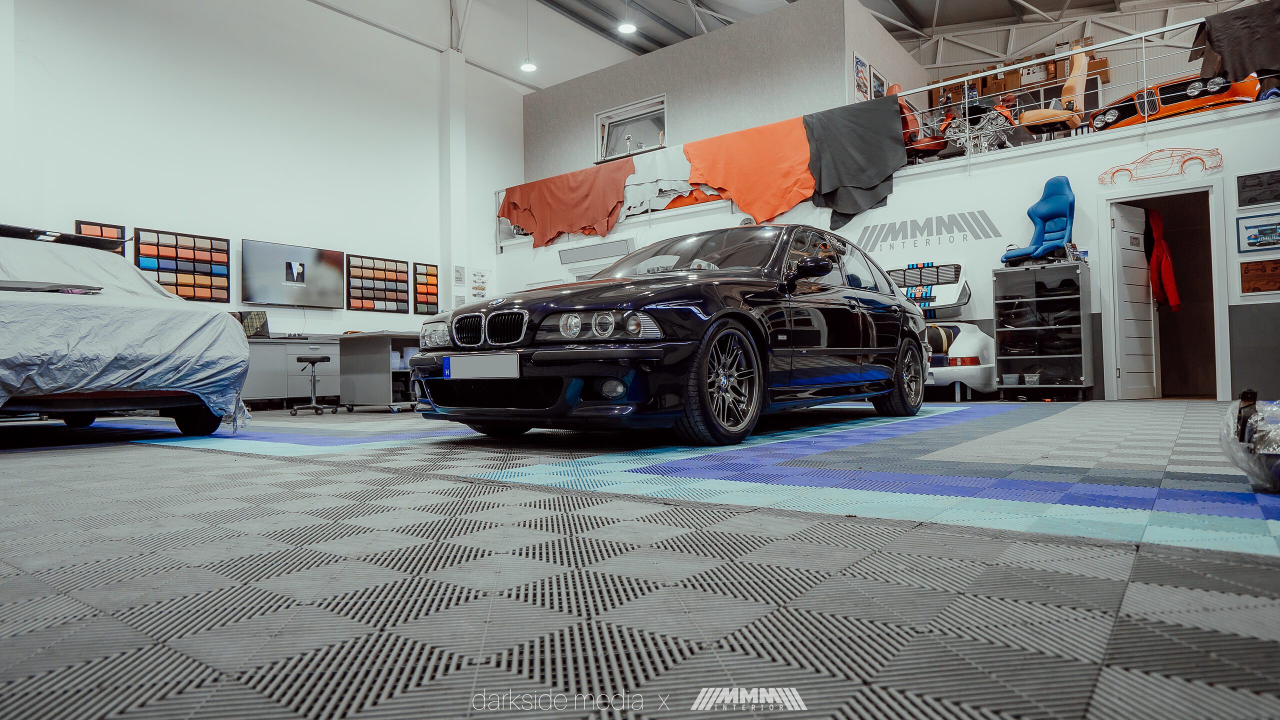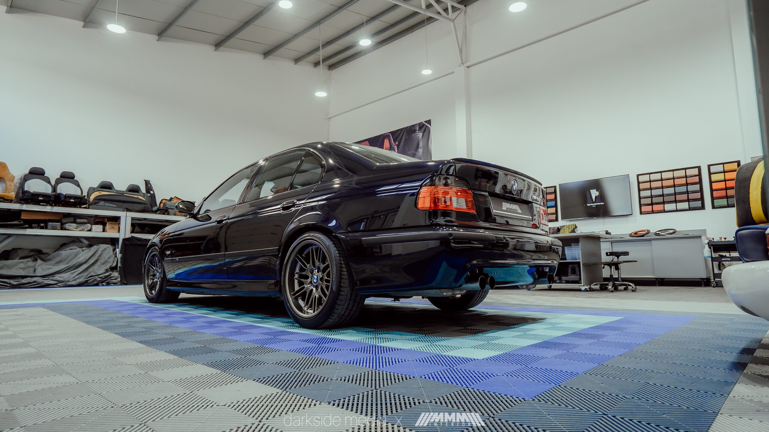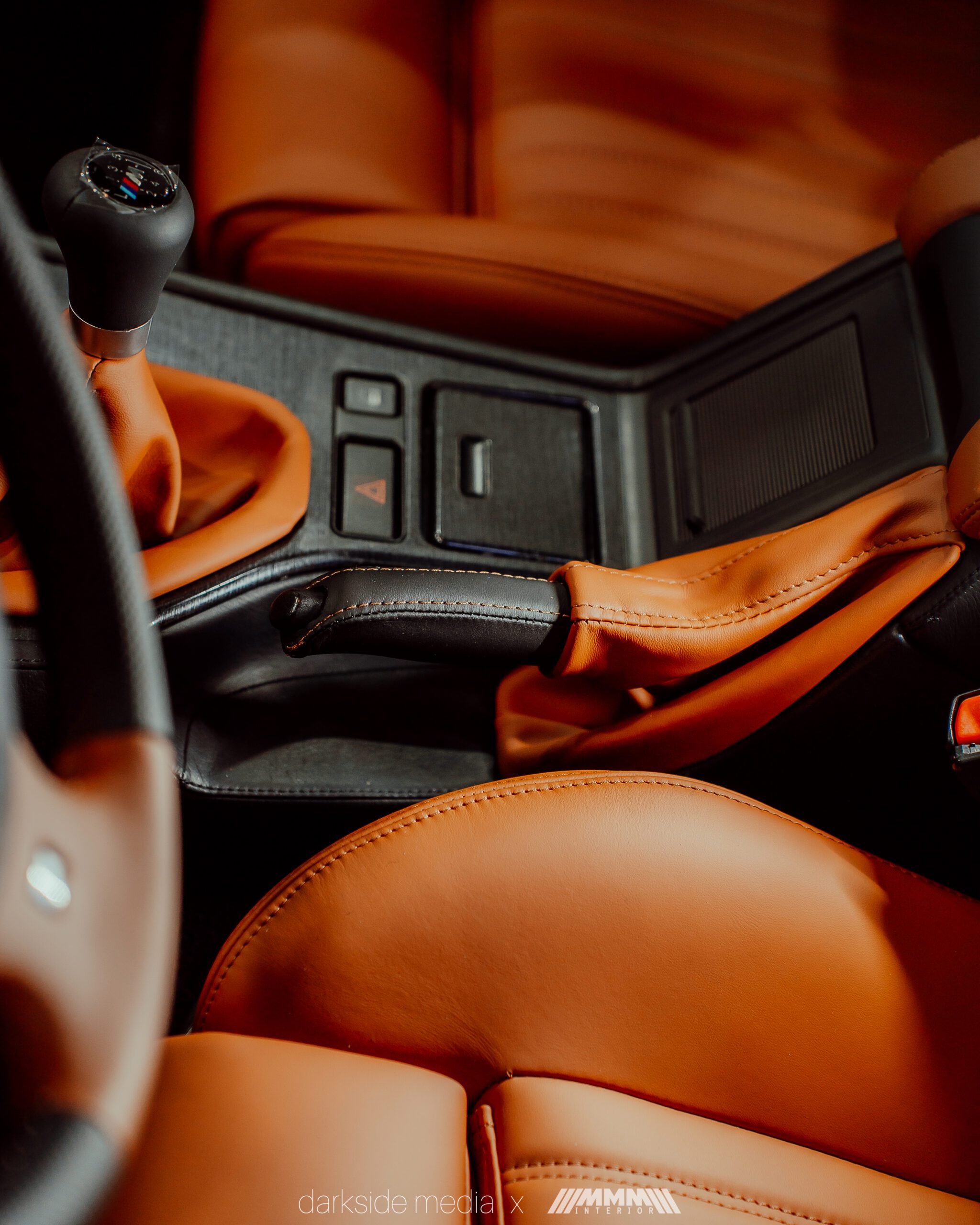 A carbonschwarz gyári fényezéssel tökéletesen harmonizál a gyári fahéj szín (természetesen nappabőr), de nem estünk túlzásba, azaz nem készült bővített bőrözés, “csak” az ülések, ajtókárpitok betétjei, a kormány és a váltózsák, könyöklő került újrabőrözésre. Sok apró típushibát is orvosoltunk egy teljes tisztítás mellett. Műszaki felújításon már átesett a gép, az utolsó lépés a fényezés korrekciója lesz, hogy egy újabb nagyon szép M5 kerüljön vissza az utakra.
